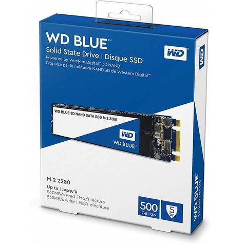 - WD Blue 500GB SSD M.2 2280 SATA 3D NAND ، قراءة 560 ميجابايت / ثانية