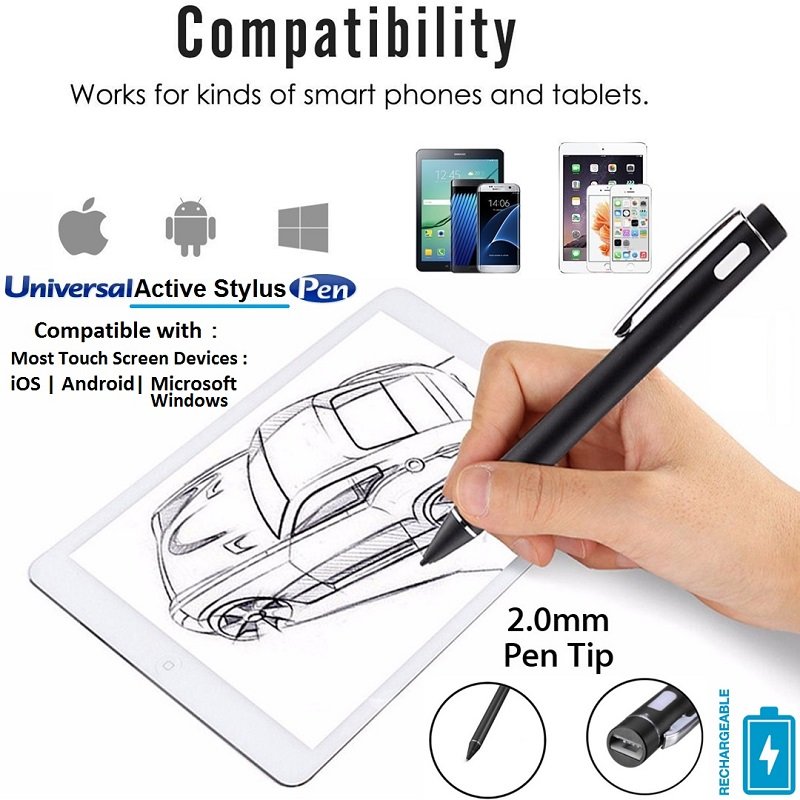 - Universal Active Stylus Capacitive Pen 2.0mm for iOS | Android | Windows Touch Screen , Writing , Drawing experience on Tablets & Smartphones