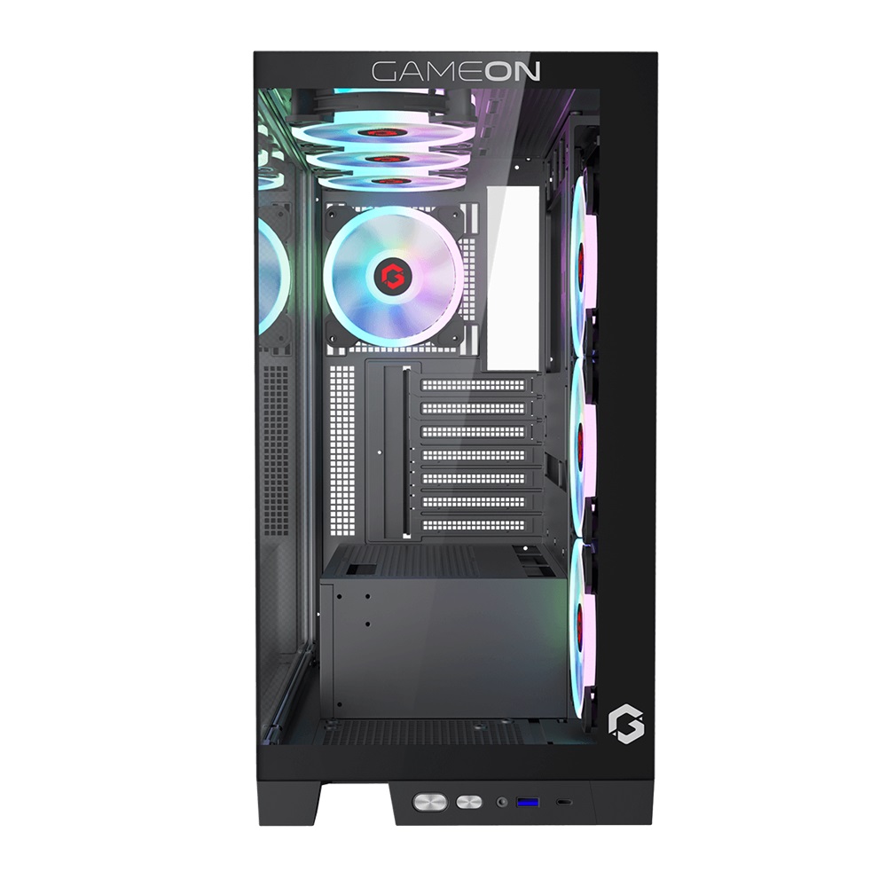 - حقيبة الألعاب GameOn Emperor Midnight IV Series Mid Tower – أسود (7 مراوح)