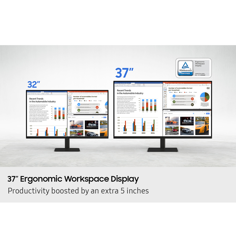 سامسونج نوع اللوحة – VA زمن الاستجابة – 5ms معدل التحديث – حتى 60Hz منفذ USB-C (للشحن والعرض) بقدرة 90 واط الدقة – 4K UHD (3840 × 2160) خاصية الصورة داخل الصورة / الصورة بجانب الصورة حامل قابل لتعديل الارتفاع (HAS)، إمالة، تدوير أفقي مفتاح KVM / منفذ إيثرنت (LAN) / دعم HDR10 / تغطية sRGB