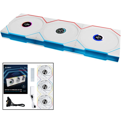 - مروحة Lian Li UNI FAN TL Wireless LCD مقاس 120 مم بشفرات عكسية مع إضاءة ARGB لاسلكية وشاشة LCD – اللون أبيض (مجموعة 3 قطع)