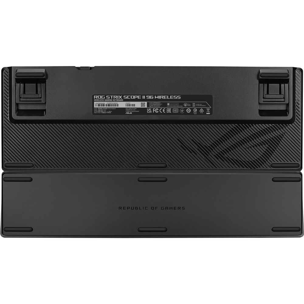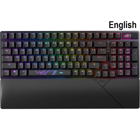 لوحة مفاتيح ألعاب لاسلكية باتصال ثلاثي الأوضاع، مع مفاتيح مخصصة للبث، وعناصر تحكم متعددة الوظائف، ومفاتيح ميكانيكية ROG NX Snow & Storm قابلة للتبديل ومشحمة مسبقًا، ومثبتات مفاتيح ROG، وأغطية مفاتيح PBT مزدوجة الحقن، ورغوة سيليكون لتخميد الصوت، وثلاث زوايا إمالة، ومسند معصم.