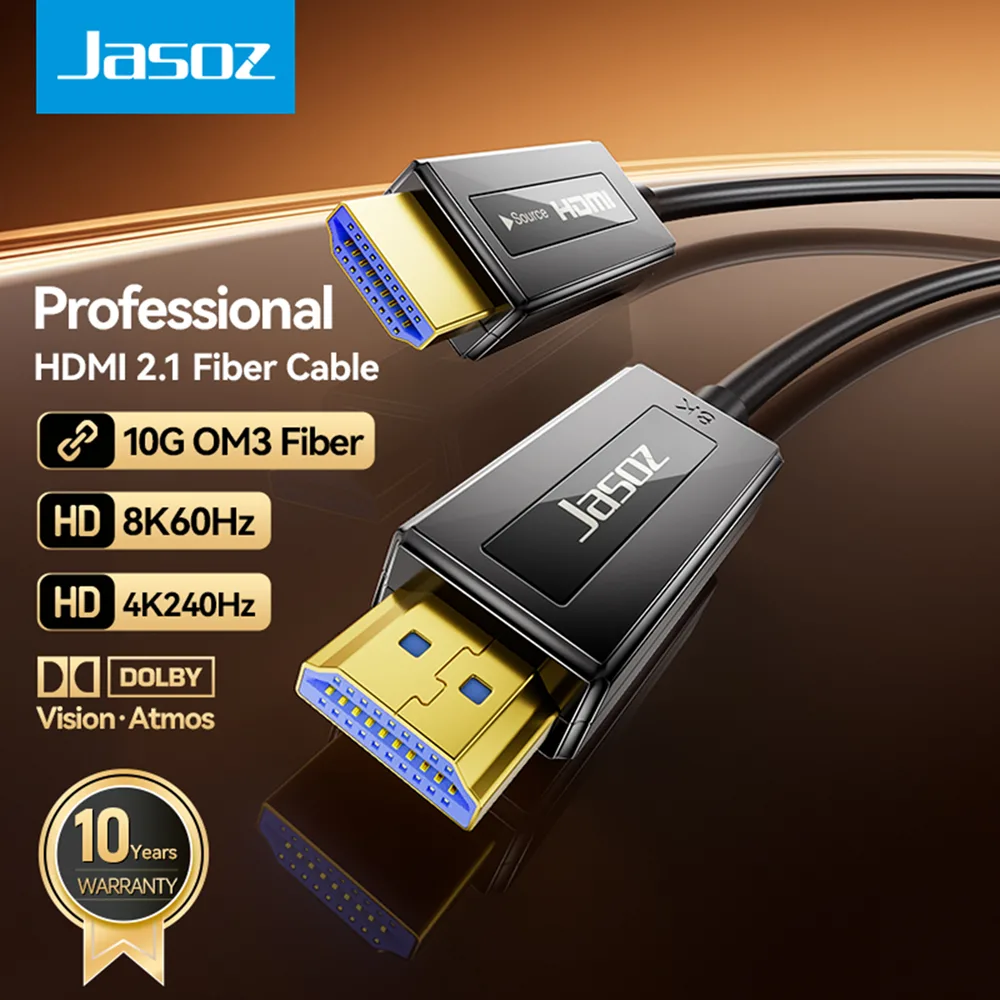 - كابل HDMI 2.1 بالألياف الضوئية JASOZ بدقة 8K بتردد 60 هرتز، الطراز A138 – بطول 25 متر