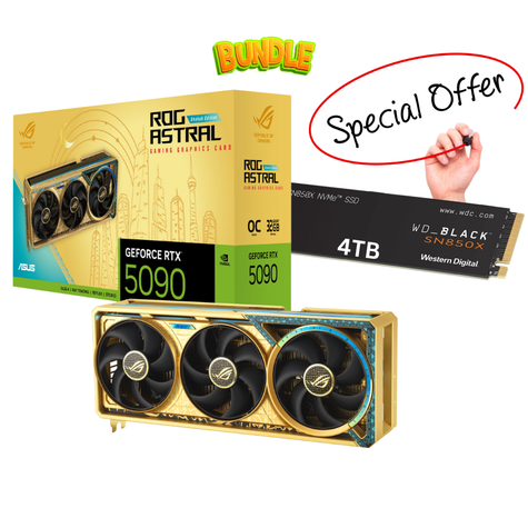 • ASUS Bundle 32GB ROG Astral GeForce RTX 5090 Dhahab OC Edition VGA Graphic Card with WD 4TB SN850X M.2 SSD