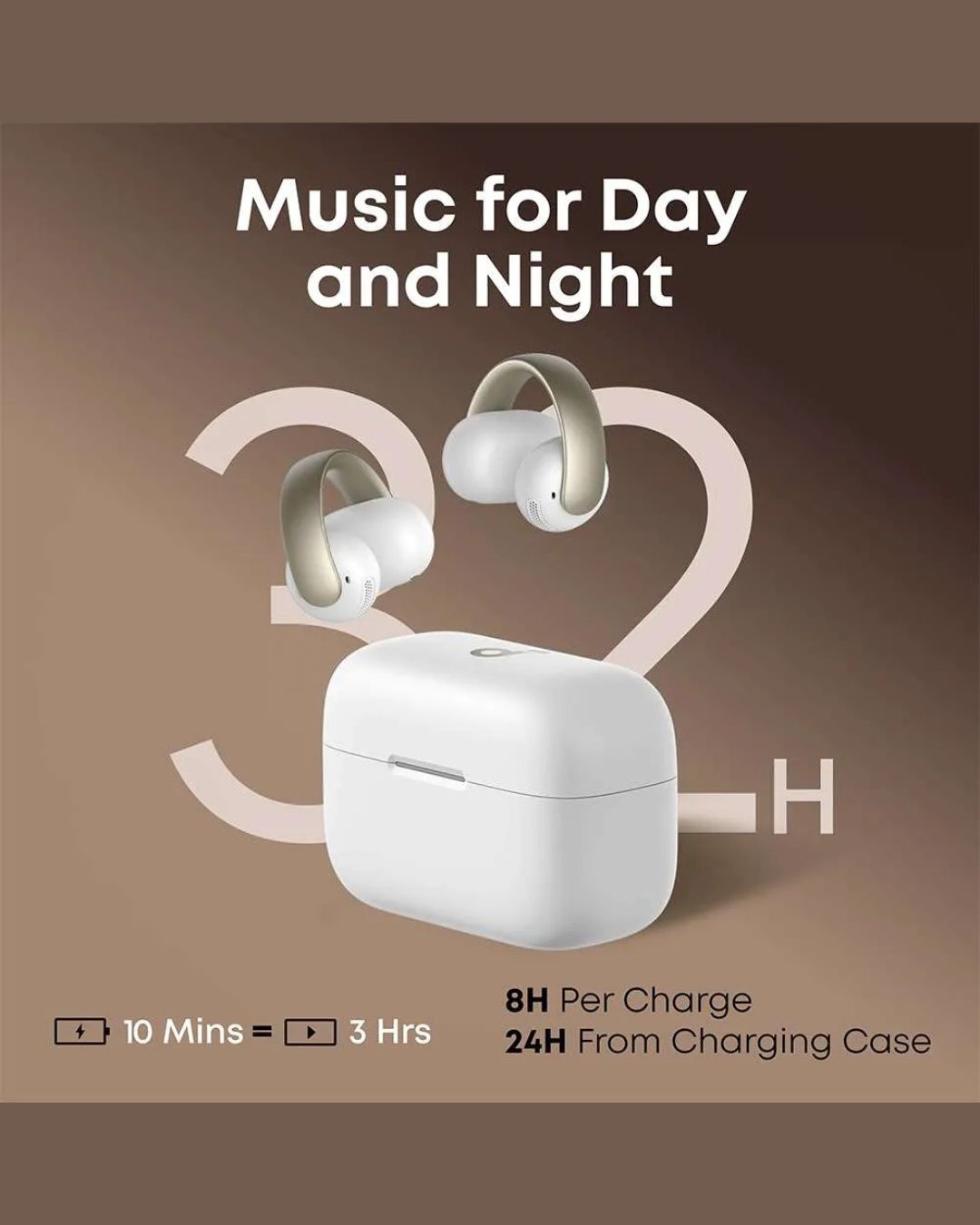 Experience high-quality audio with Anker Soundcore Aero Clip wireless earbuds in sleek black. Designed for comfort and stability, these earbuds feature titanium-coated drivers for clear sound and deep bass. With up to 32 hours of playback, advanced microphone technology for calls, and IPX4 water resistance.