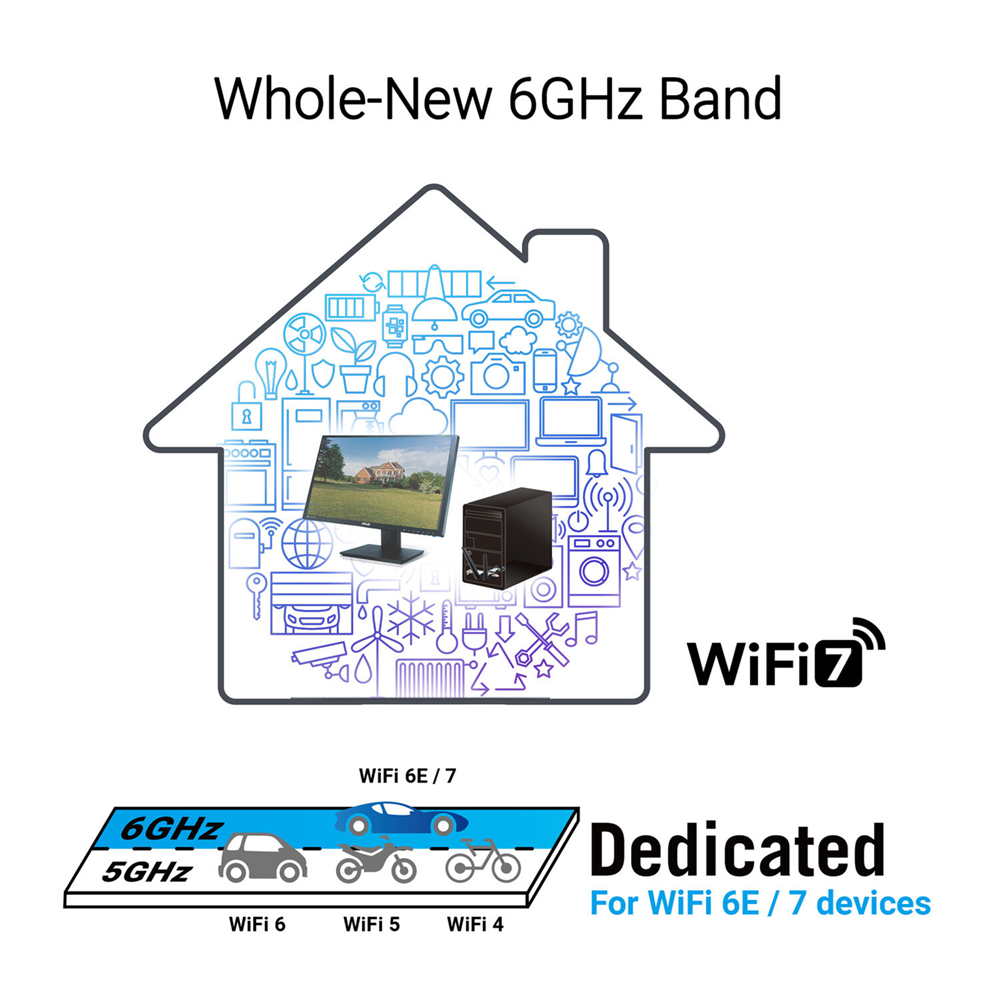 - ASUS PCE-BE6500 WiFi 7 Tri-Band PCI-E Bluetooth 5.4 6GHz Adapter