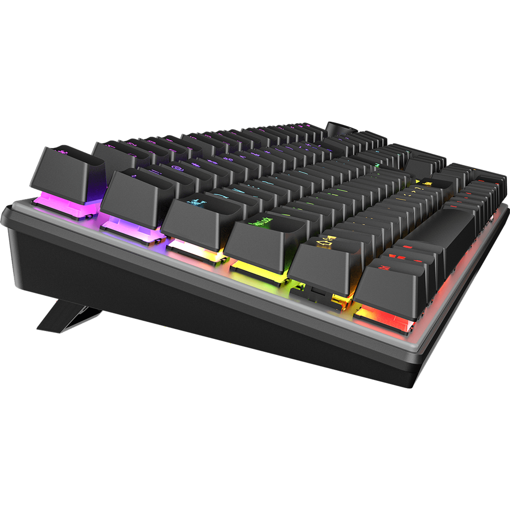Equipped with red mechanical switches, it it offers a linear and smooth typing experience with a lifespan of approximately 50 million keystrokes, making it ideal for gaming and typing.