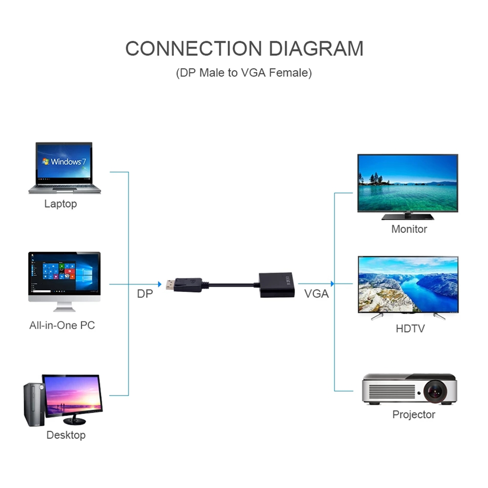 - Jasoz G105 DisplayPort to VGA Adapter, DP Male to VGA Female Convertor